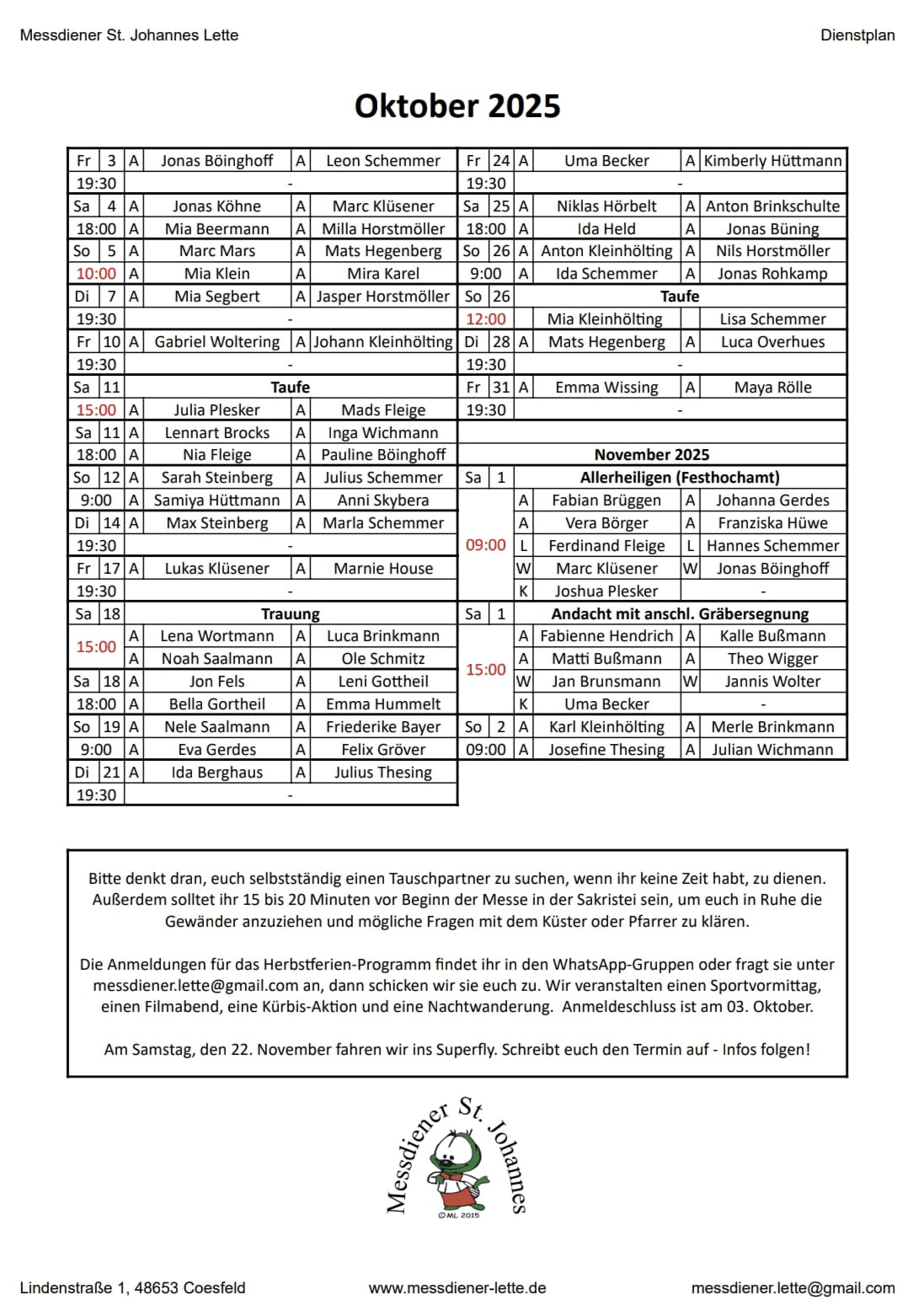 Dienstplan 📆 Hallo zusammen!Hier gibt’s den Dienstplan für November 2025! 🎉 Wir wünschen euch einen guten Start in den November und hoffen, ihr seid bei unseren Aktionen und Treffen mit dabei 🥳 08.11. ➡ Laternen Weiterlesen…